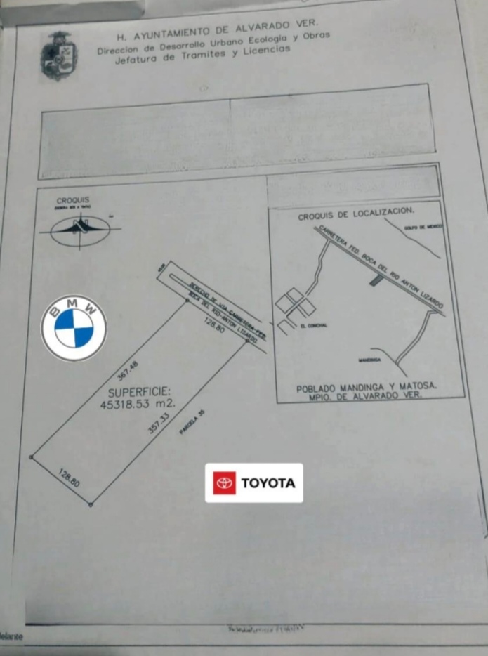 SE VENDEN 45,318.53 M2. A ORILLA DE LA RIVIERA VERACRUZANA, UBICADO EN MEDIO DE LAS AGENCIAS DE AUTOS BMW Y TOYOTA, EN LA CARRETERA FEDERAL BOCA DEL RIO ANTON LIZARDO. CUENTA CON UN FRENTE A LA RIVIERA VERACRUZANA DE 128.80 M. POR 357.33. DE FONDO. ESTE TERRENO ES UNICO E IDEAL PARA COMERCIO, PARA PLAZA O DESARROLLO COMERCIAL. ALREDEDOR SE ENCUENTRAN ESCUELAS, CLUB DE RAQUETA, CAFÉS COMO LA PARROQUIA, COLEGIOS, BANCOS, FARMACIAS, WALMART EXPRESS, GASOLINERAS, TORRES DE CONDOMINIOS, FRACCIONAMIENTOS A ORILLA DE MAR, EMBARCADEROS, ETC. PRECIO DE VENTA 6,000.00 PESOS EL M2 A TRATAR. INFORMES PEDRO CASTILLO, CEL 2291748401.